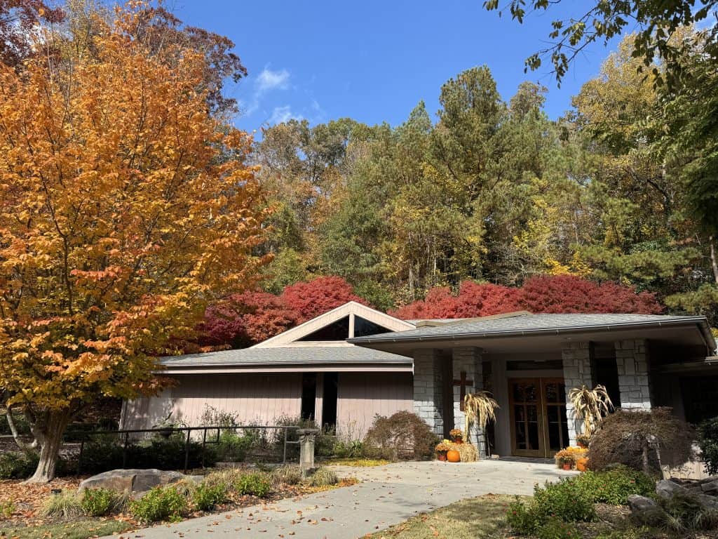 This is one of the most beautiful weeks at St. Dunstan’s, when the leaves are in full glory. In past years those red leaves have turned the windows over the altar into a glorious swath of red. Some enthusiastic pruning of the trees has changed that. Last year there was no color; this year there is a beautiful touch of red. Within a year or two it will be breathtaking again. But it’s actually breathtaking to see it as you come up the walkway. Take a moment and glory in God’s creation.