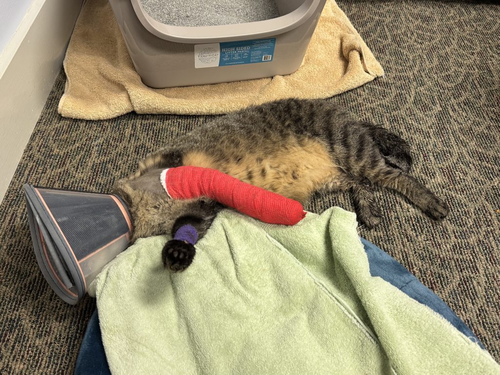 This is going to be a long recovery. She needs to be confined to a crate for six weeks. (I wish they had told me this before I picked her up.)